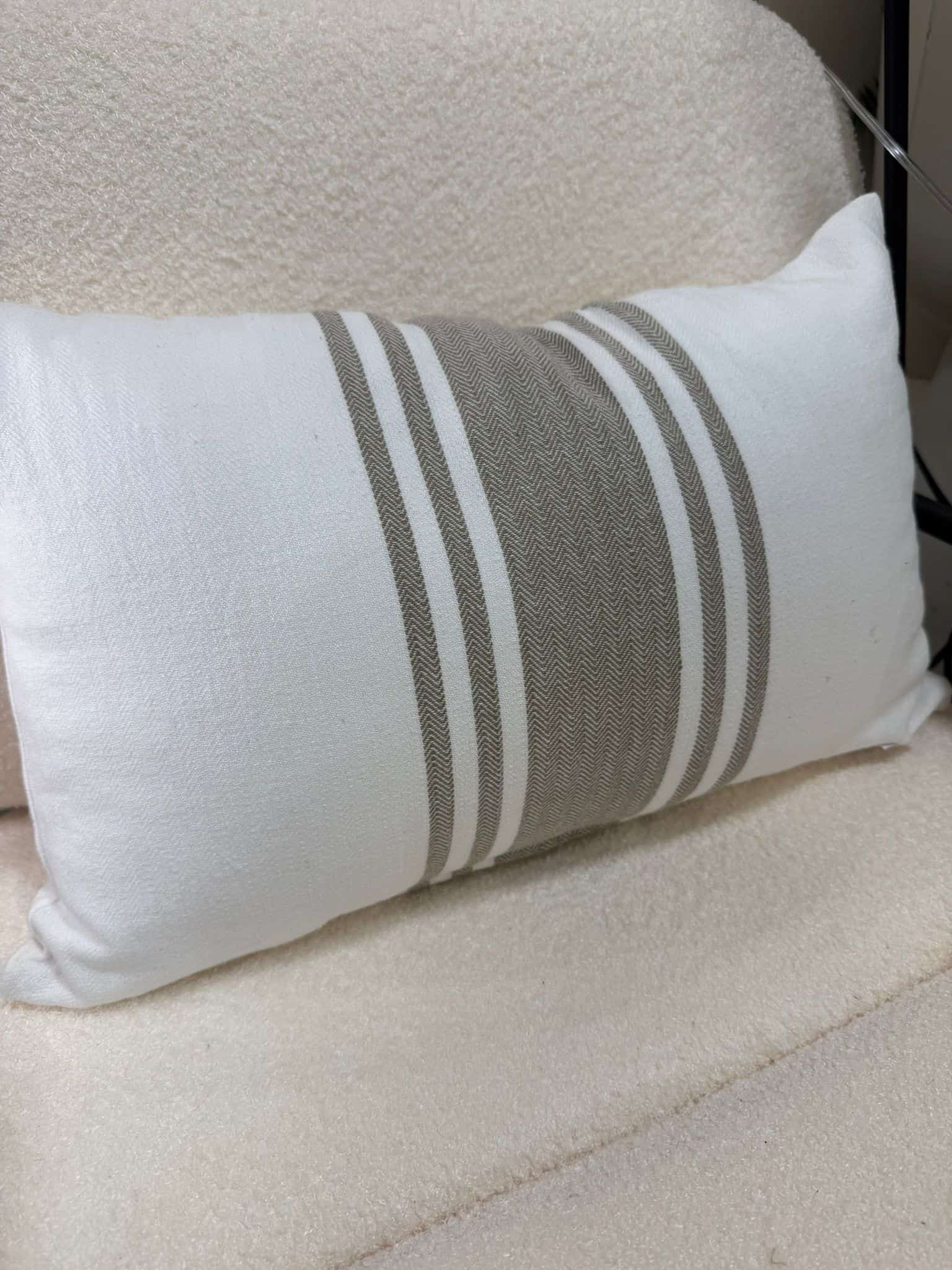 כרית כותנה לבנה מלבנית עם פסים באמצע בצבע בז'