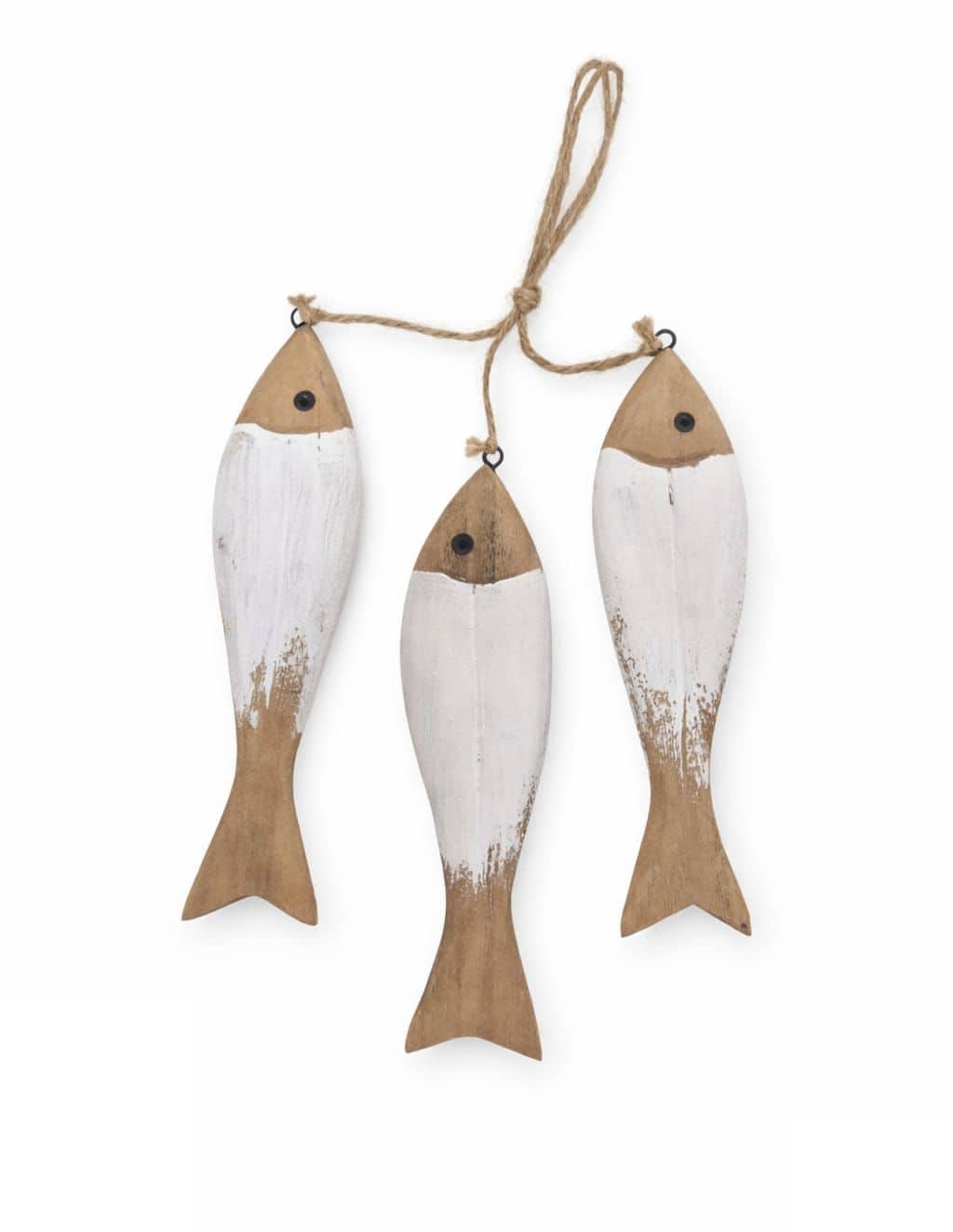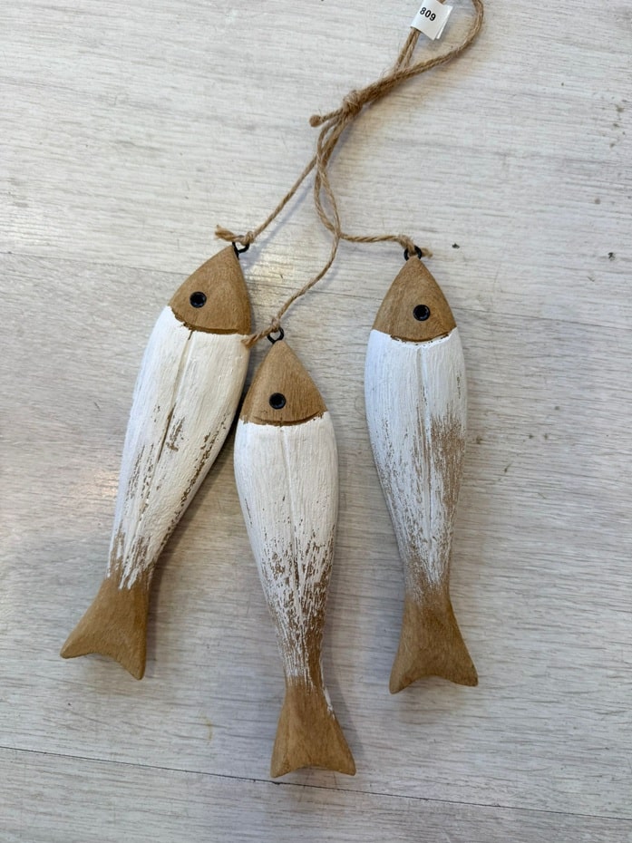 מתלה שלישיית דגים עץ בצבע טבעי לבן