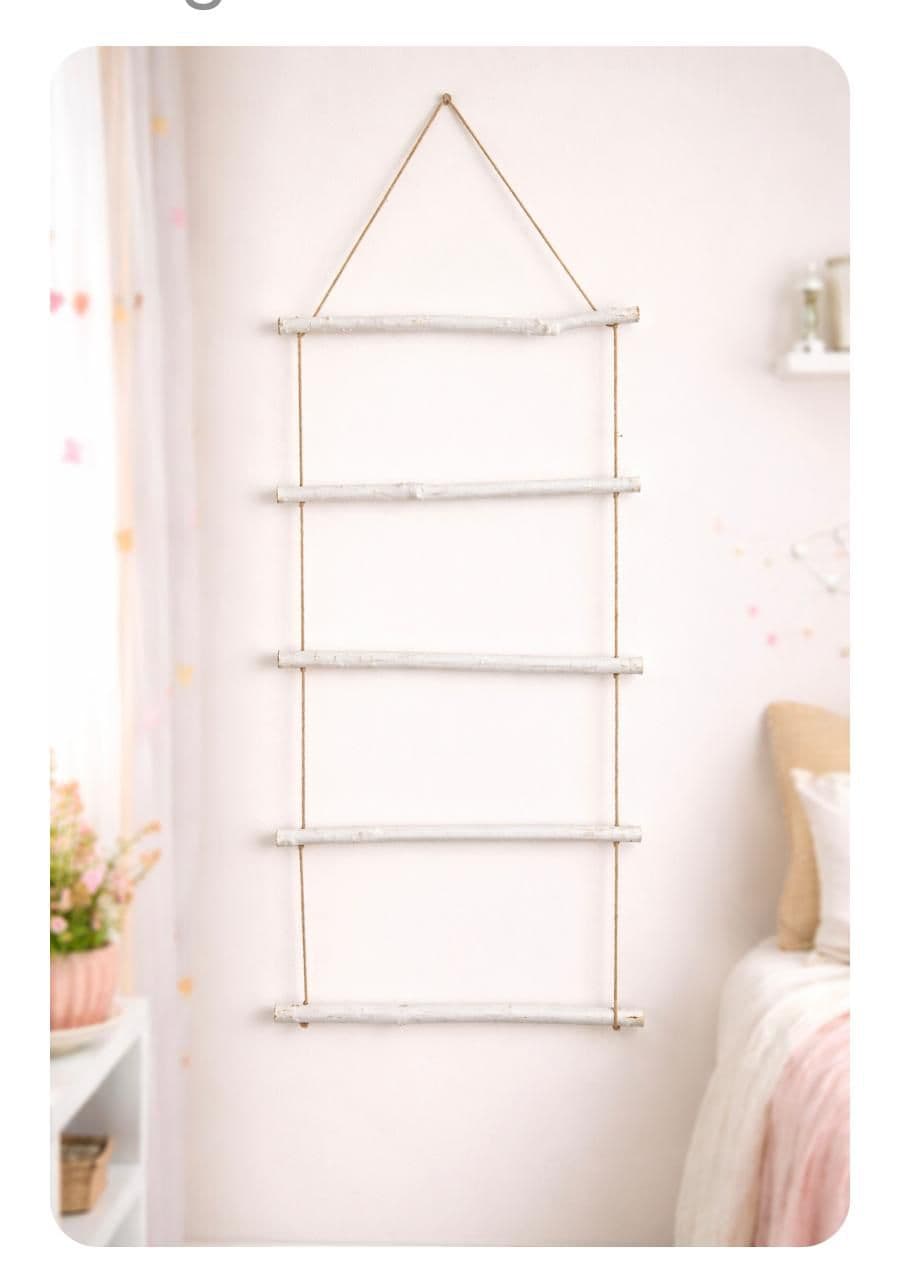 מתלה סולם חבל ועץ דקורטיבי לתליה בחללים שונים בבית