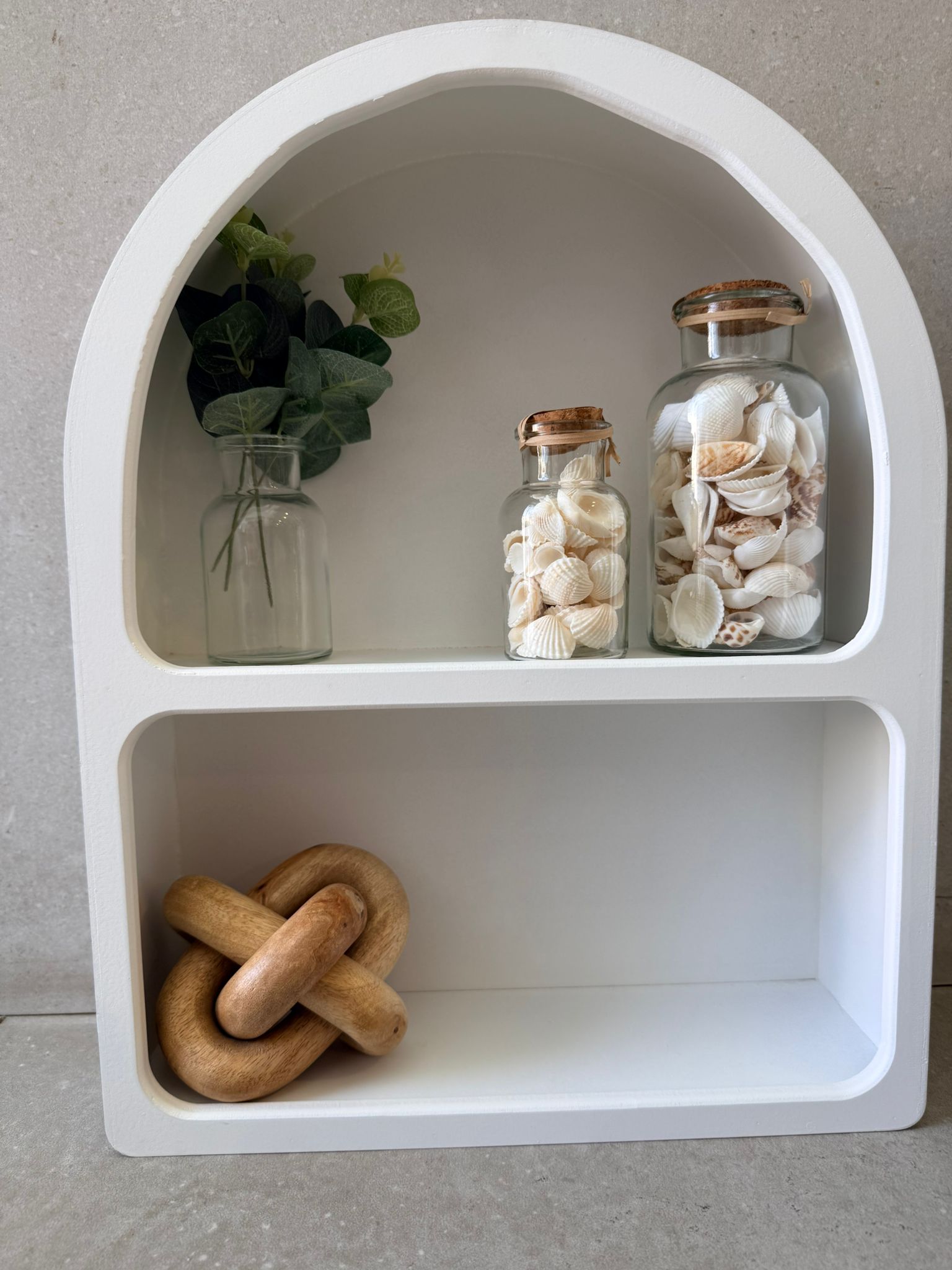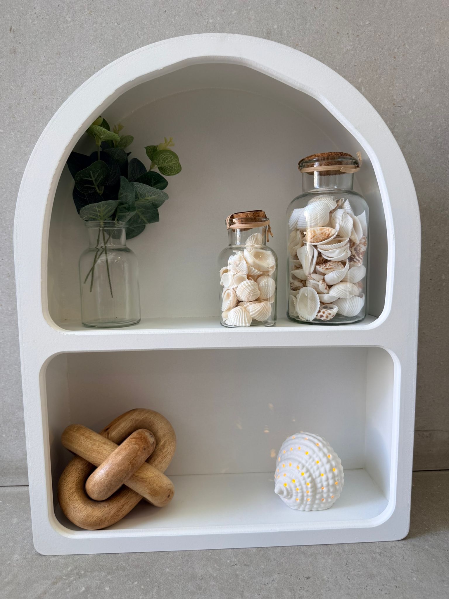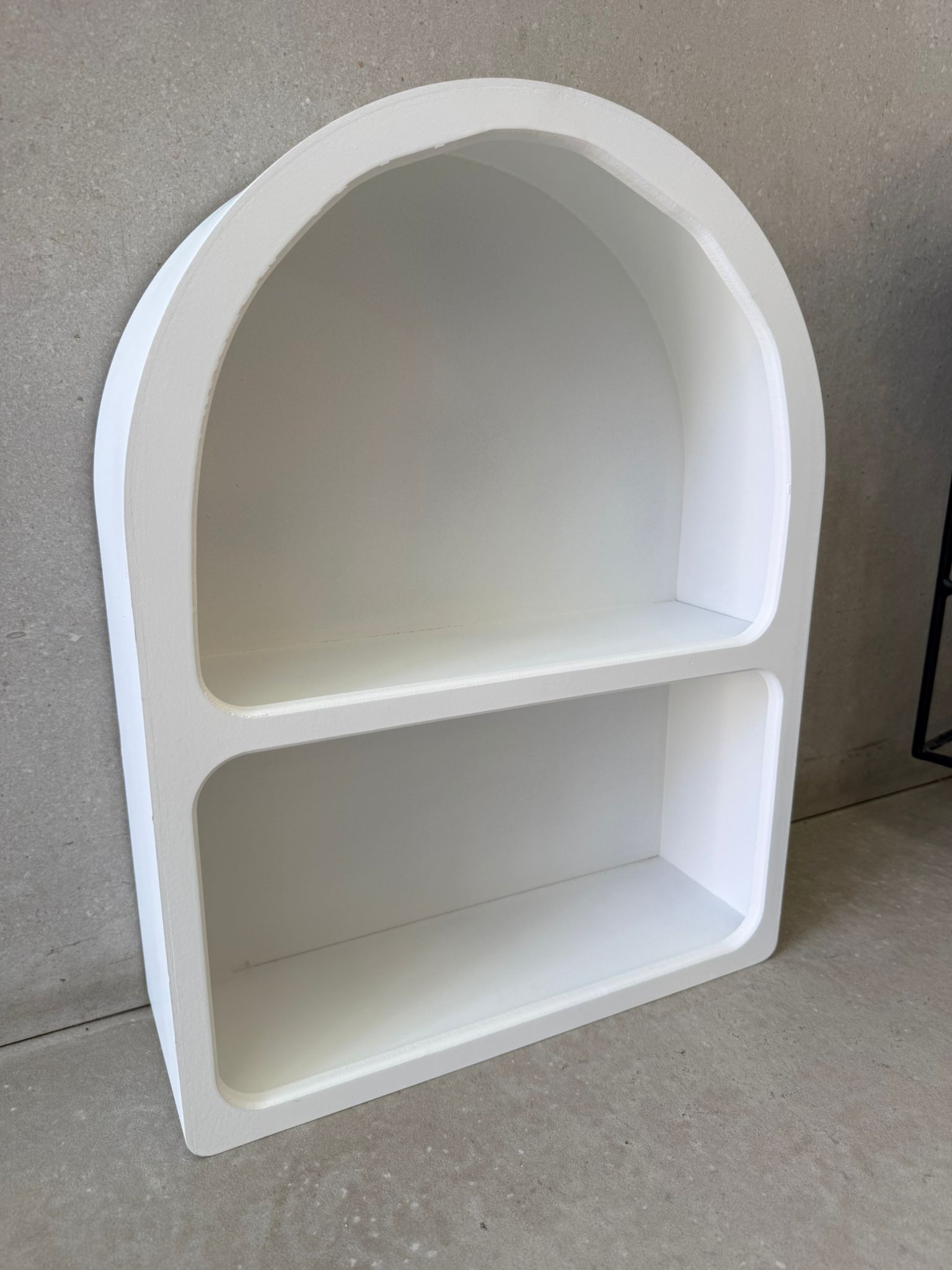 מדף קשת מחולק ל-2 בצבע לבן, מהמם עיצוב פינות בבית, מושלם בחדרי ילדים