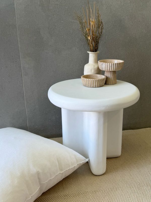שולחן צד לבן עגול דמוי אבן