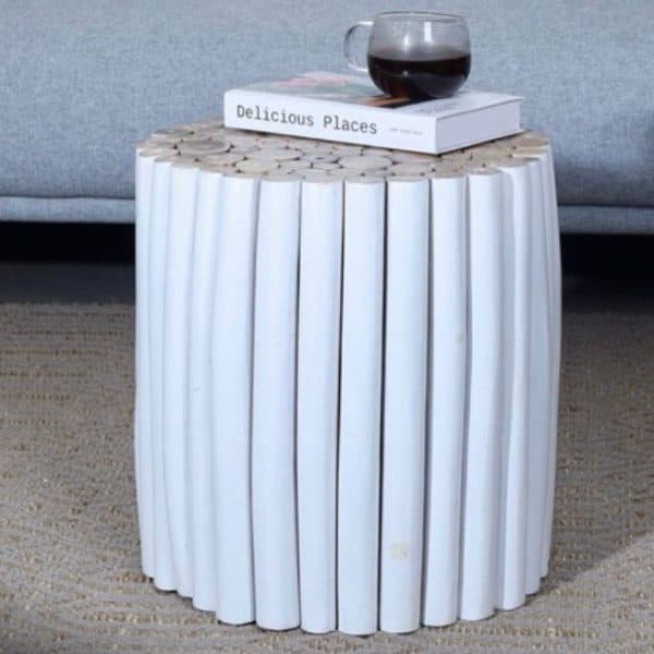 אסופה של גזעי עץ מגולפים יוצרים שולחן עגול למראה כפרי ורומנטי לעיצוב הבית.