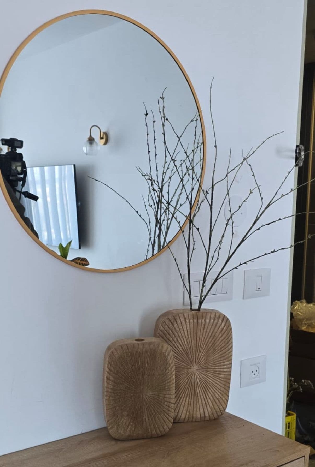 אגרטל עץ משגע עם חריצי פסים בסגנון מינימליסטי מהמם בגוון טבעי שיתאים לכל חלל בבית ולכל סגנון עיצובי