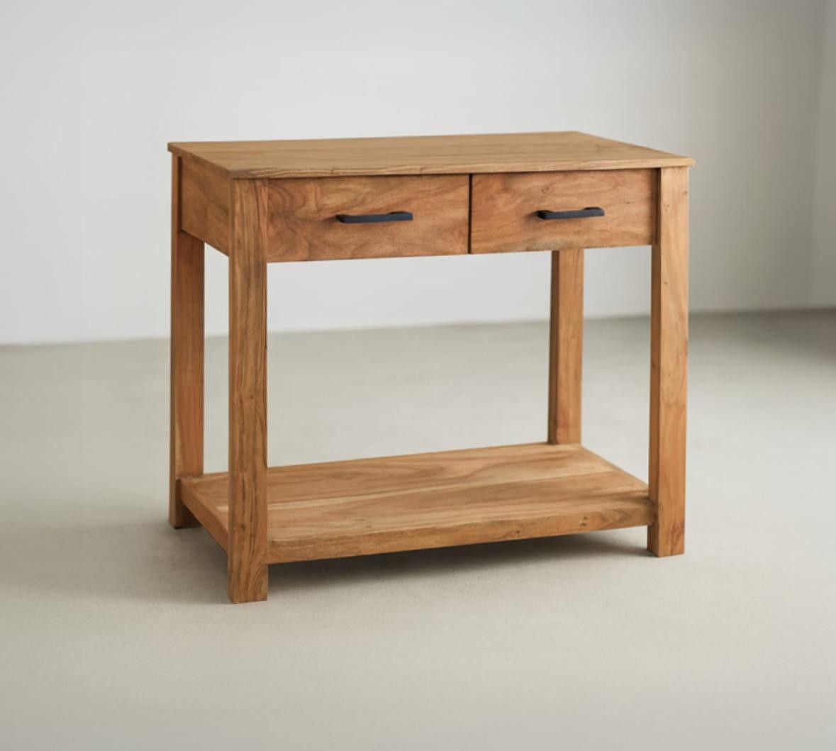 שידת קונסולה מהממת מעץ עם 2 מגירות אחסון ומדף תחתון פתוח